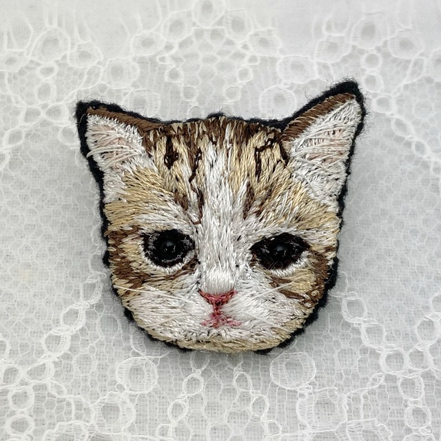 刺繍ブローチ キジトラ白猫