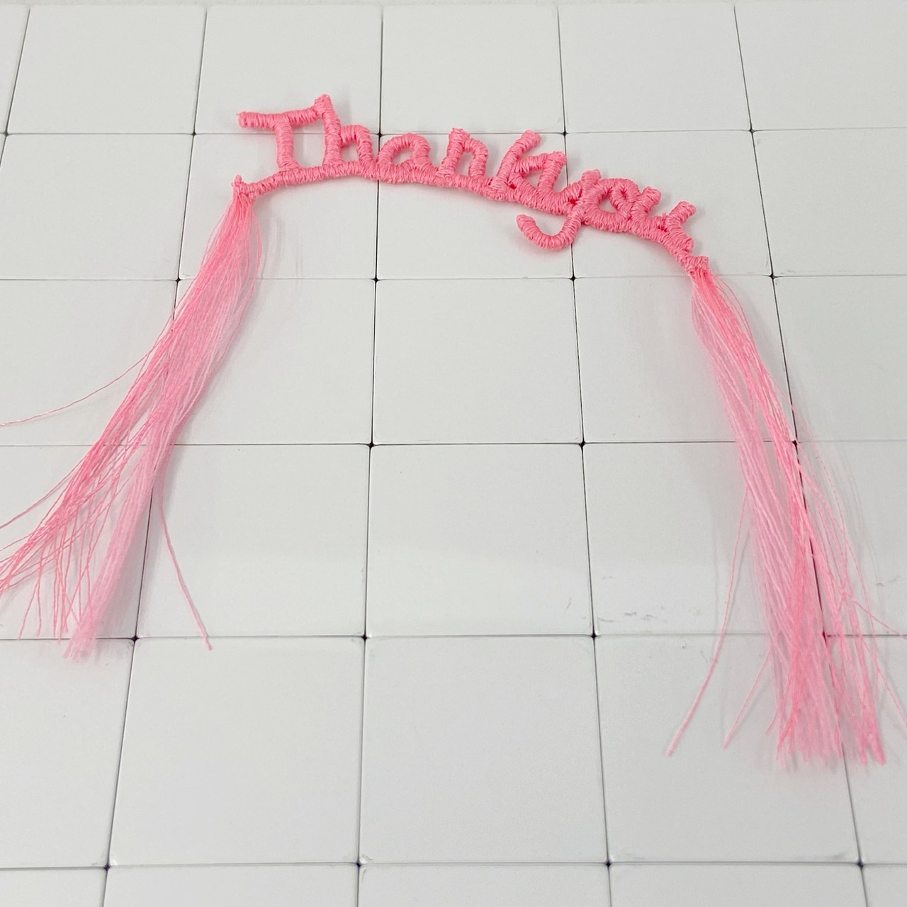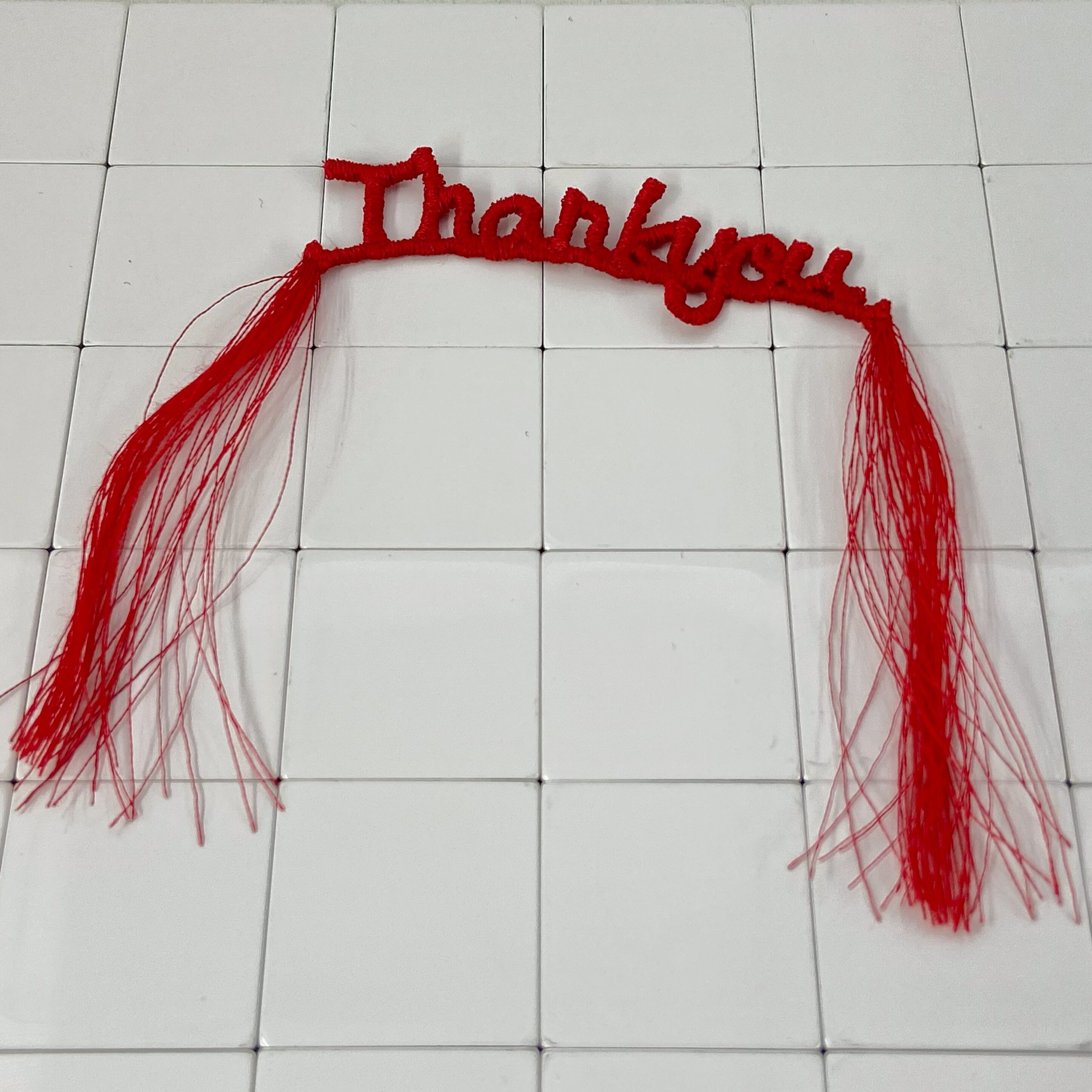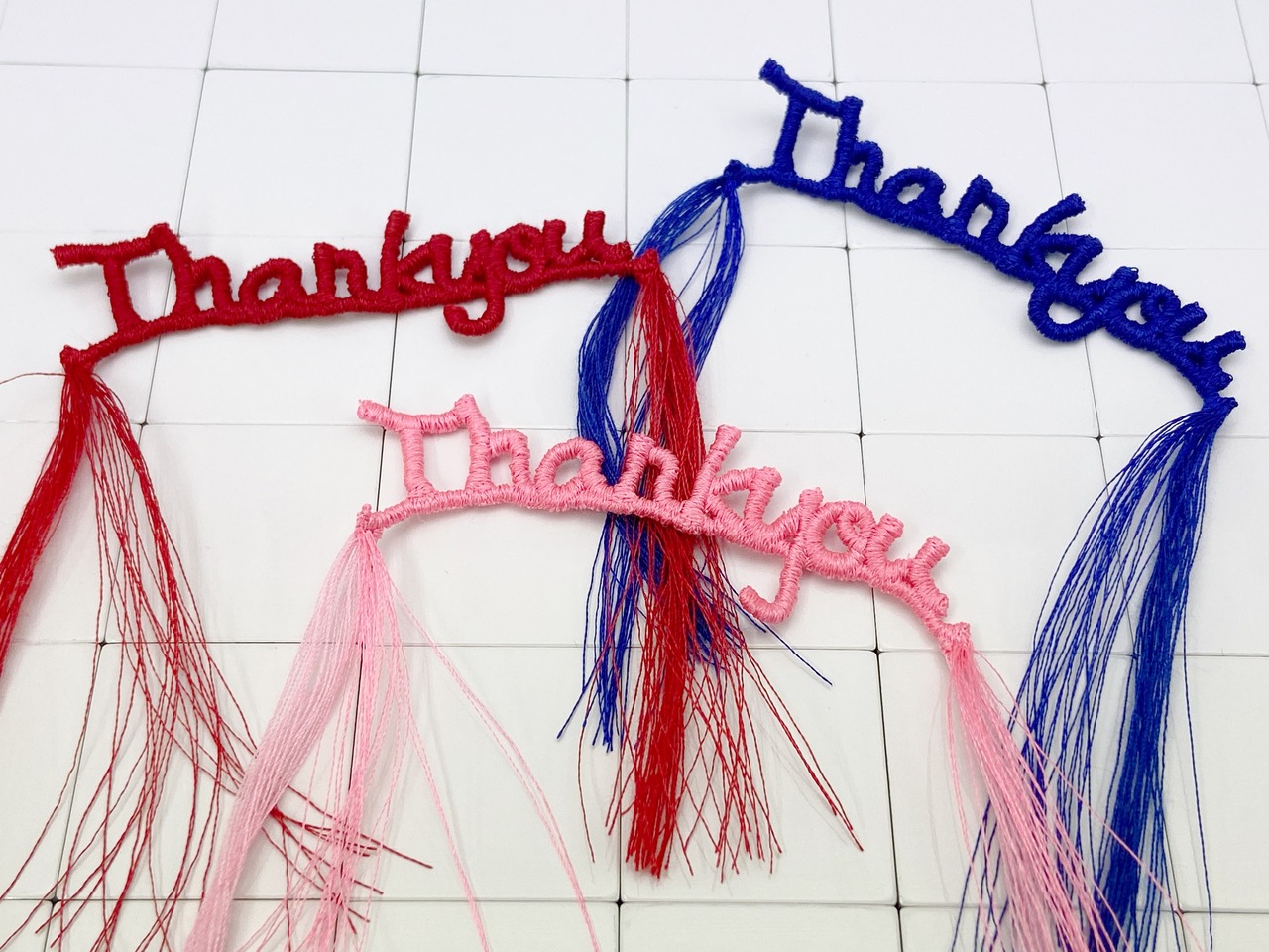 フリンジがかわいい刺繍糸で作成したthank youモチーフです。