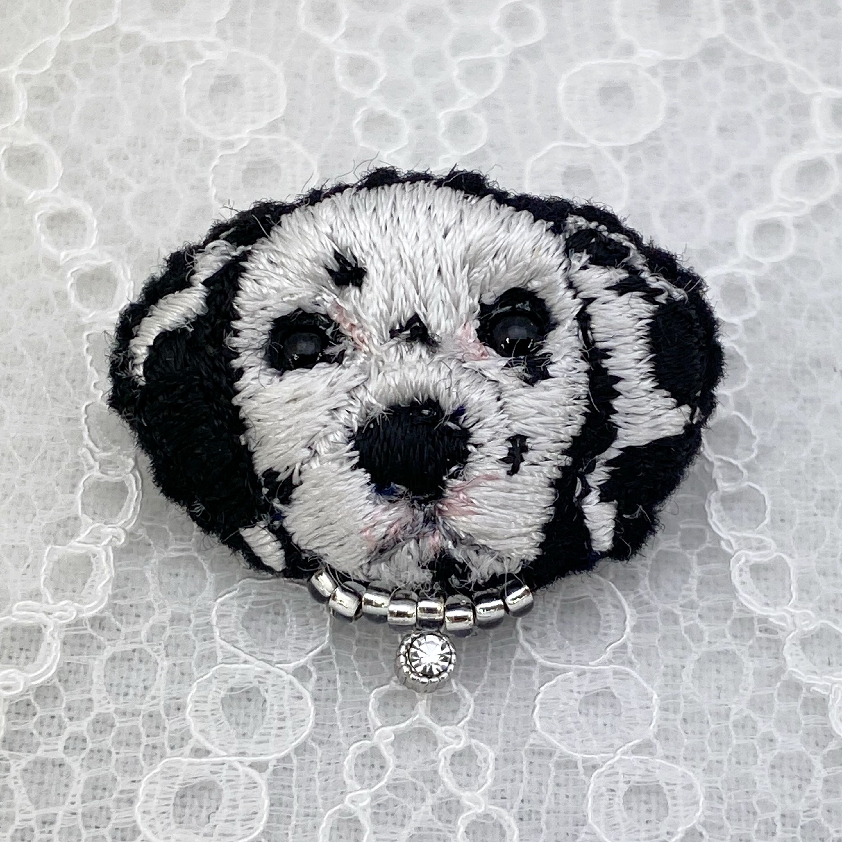 職人がフェルトに手振りミシンで1針1針刺繍したブローチです。